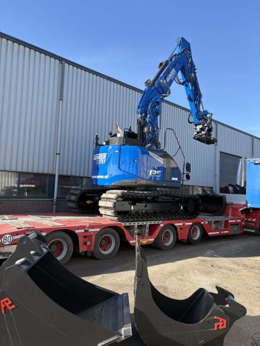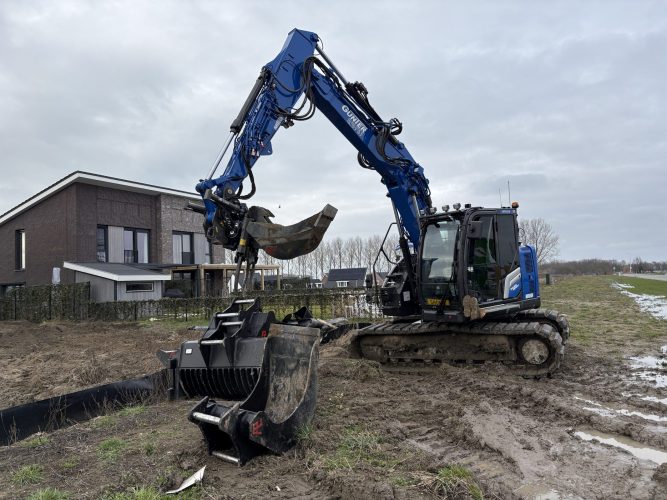 De machine hebben we volledig naar wens opgebouwd en bedrijfsklaar gemaakt. In de opvallende blauwe bedrijfskleur staat hij er strak bij en is hij direct herkenbaar op het werk.