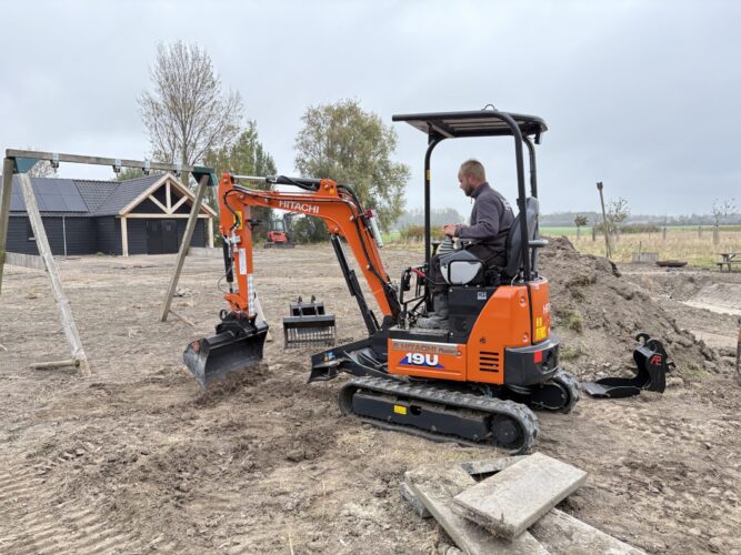 Het machinepark van Hoveniersbedrijf Minderhoud uit Domburg werd uitgebreid met een nieuwe HITACHI ZX19U-6 canopy minigraver.