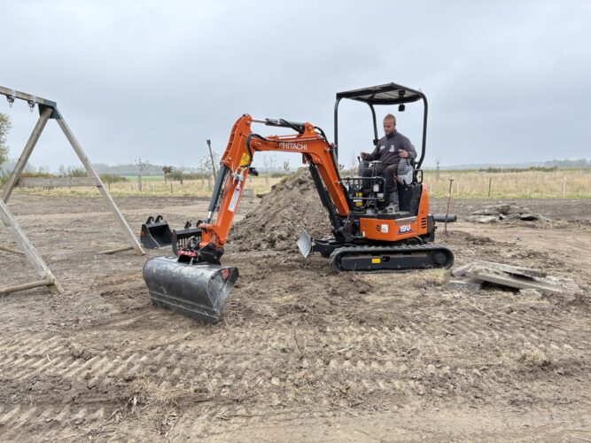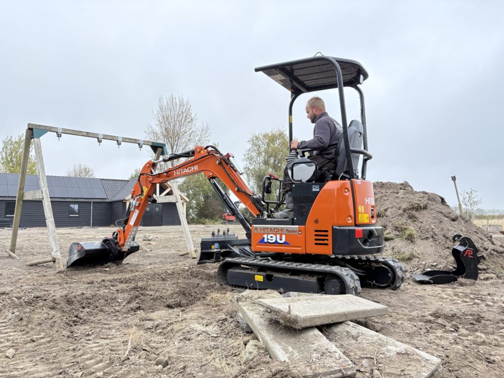 De HITACHI ZX19U-6 werd door Pladdet voorzien van een hydraulische snelwissel en 4 bakken. Ook werd een Lubecore vetsmeersysteem opgebouwd.
