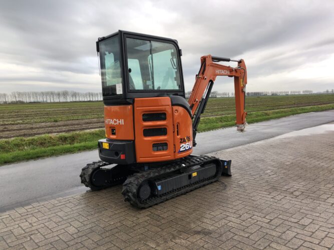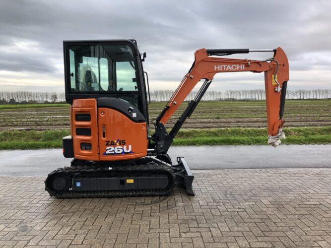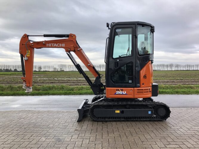 - Extra hydraulische functie voor sloophamer of kantelbak, enkel- en dubbelwerkend, met leidingen tot op de graafarm, proportioneel bediend